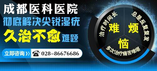 成都医科医院泌尿病毒科专家指出,尖锐湿疣的治疗方法有很多如:药物治疗、激光治疗、光动力治疗、冷冻治疗、TTS分型免疫清毒疗法都是治疗湿疣疾病好的方法。但每个患者的病情程度不同,因此治疗的效果也会有所不同。感染尖锐湿疣后,一定要到正规性病医院进行治疗否则错过最佳治疗时机会造成病情恶化。>>>你目前接受过哪些方法的治疗?点击咨询专家!